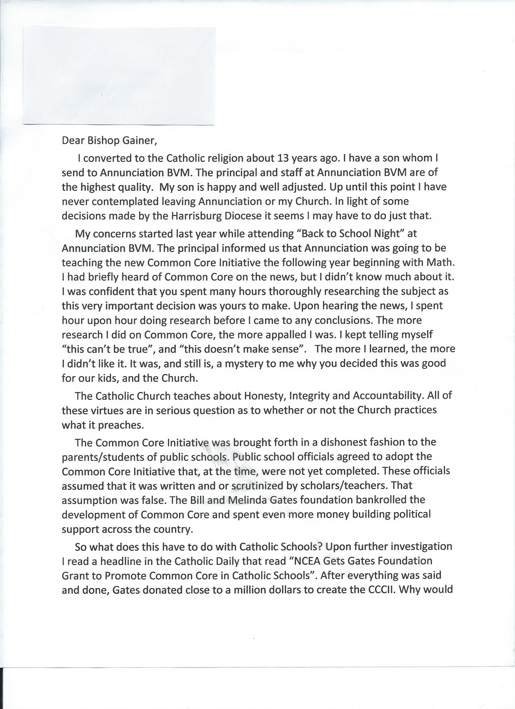 A Harrisburg Catholics Against Common Core FB friend asked me to post this letter a friend of hers sent to Bishop Gainer. Time to speak up – even if we don’t win, we must fight.