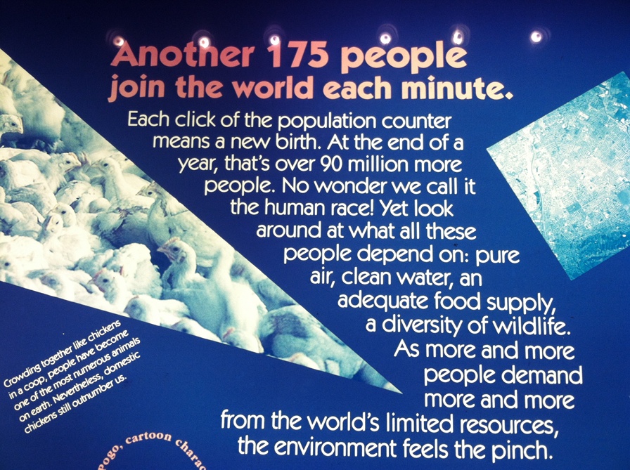 Patuxent 175 PPL“People have become one of the most numerous animals on earth.” And we just keep on coming.  Everyday, 175 more mouths to feed, clothe and support! As the little sidebar says, we’re “Crowding together like chickens in a coop.” Kinda makes ya  look at your fellow human polluters with disdain and disgust.